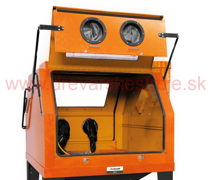 Samostatne stojaci box s aktívnym odsávaním na pieskovanie stredne veľkých predmetov.