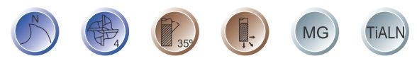 Počet britov: 4 Uhol skrutkovice: 35 ° Povlakovanie: TiAlN
