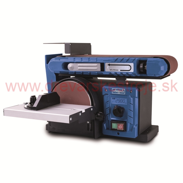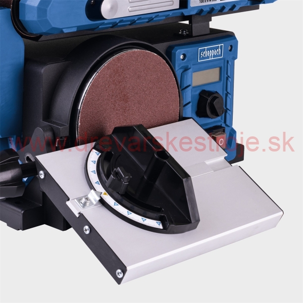 Stroj nabízí vysokou variabilitu – jednotku s brusným pásem lze naklápět v rozsahu 0–90°, tedy od horizontální do vertikální polohy. Přídavný pracovní stolek s úhlovým pravítkem je sklopný a lze jej zajistit mezi 0° a 45°. Na rozdíl od mnoha konkurenčních modelů je kotoučová bruska plně integrována do těla stroje, takže neomezuje prostor pro práci ani s většími obrobky. Brusný papír se na kotouč upevňuje snadno pomocí suchého zipu.